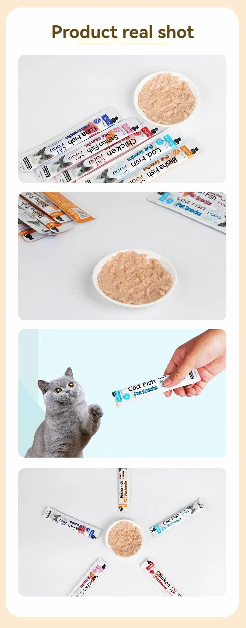 15g*100 Large Capacity Pet Food Cat Snacks Cat Wet Creamy Strips Tuna Salmon Chicken Pet Wet Food