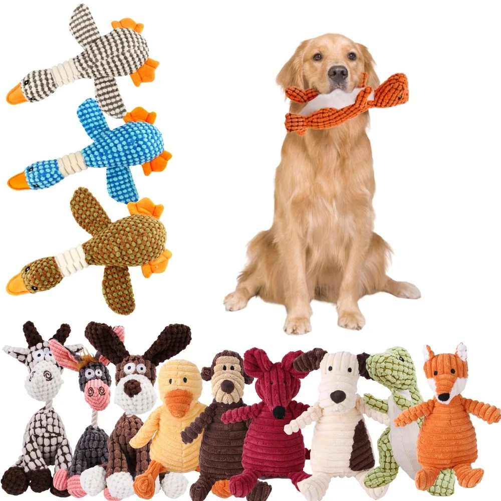 Animals Shape Squeaky Toys Plush Dog Toy Cute Bite Resistant Corduroy Dog Toys for Small Large Dogs Puppy Pet Dog Accessories