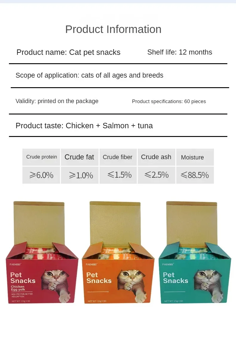 15gX50pcs Wet Cat Food Chicken Tuna Cod Fish Pet Wet Food Pet Supplies