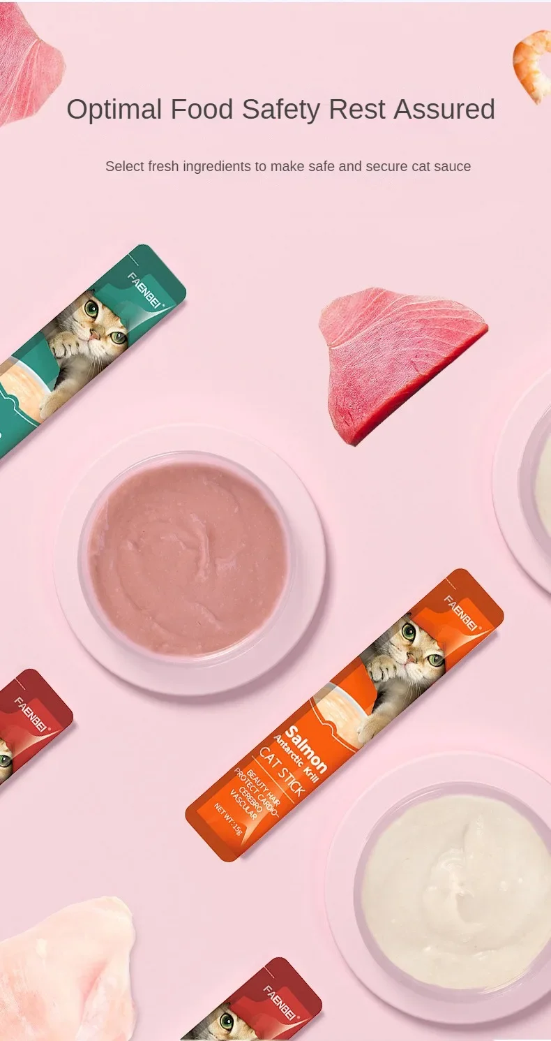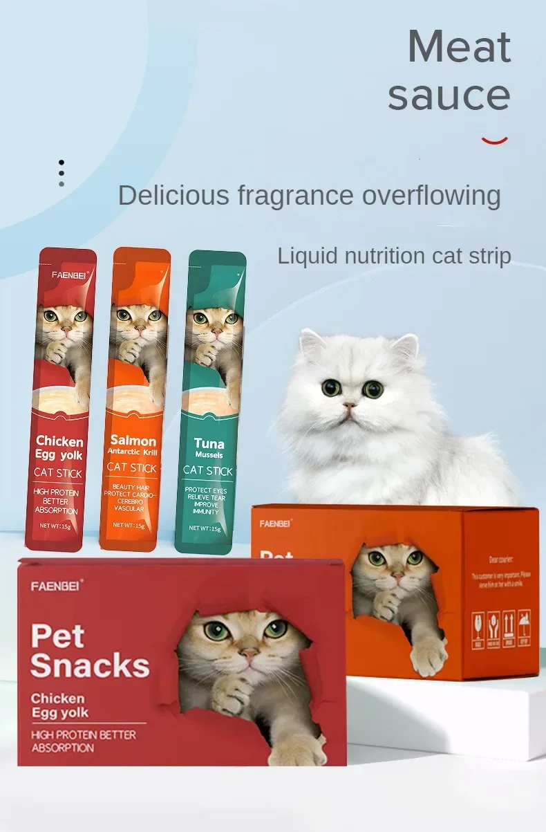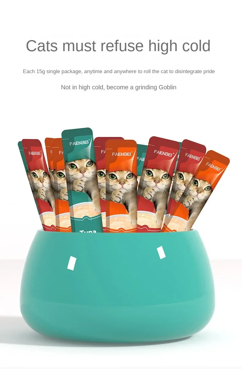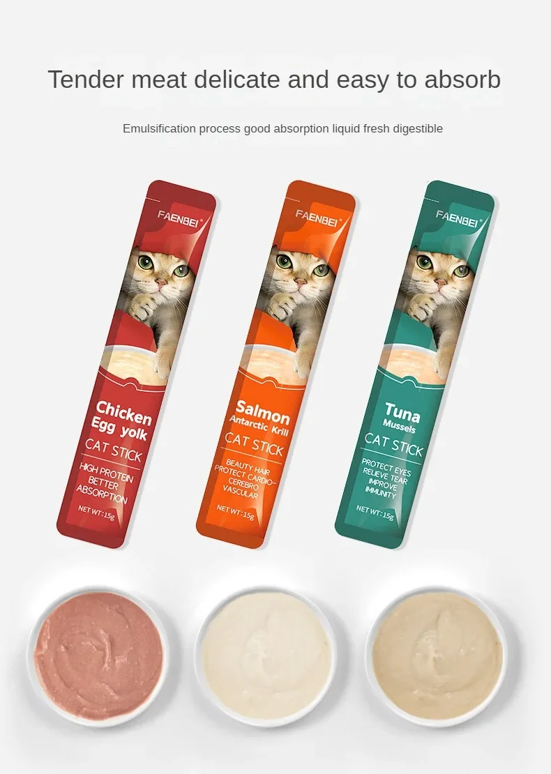 10pcs 15g/Stripe Cat Strips Pet Snacks Various Flavors Nutritious Protein Wet Cat Food