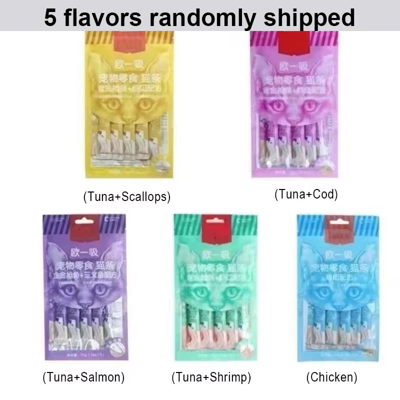 5 packs/set Pet Snacks Cat Strips Adult and Young Cat Wet Food Pack Cat Liquid Snacks Pudding Tuna+Shrimp Formula Mixed Flavor 70g/bag