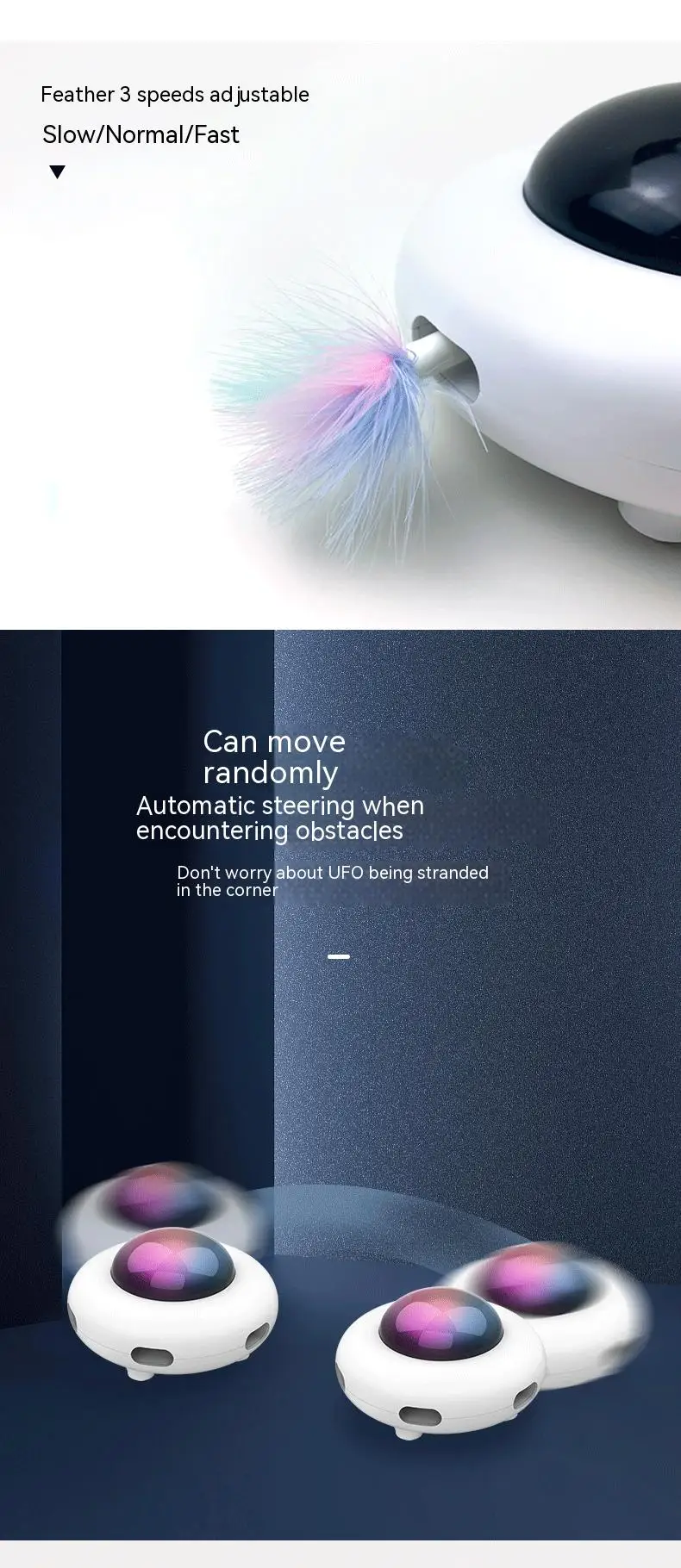 Cat Toy Smart Teaser UFO Pet Turntable Catching Training toys USB Charging Cat Teaser Replaceable Feather Interactive Auto
