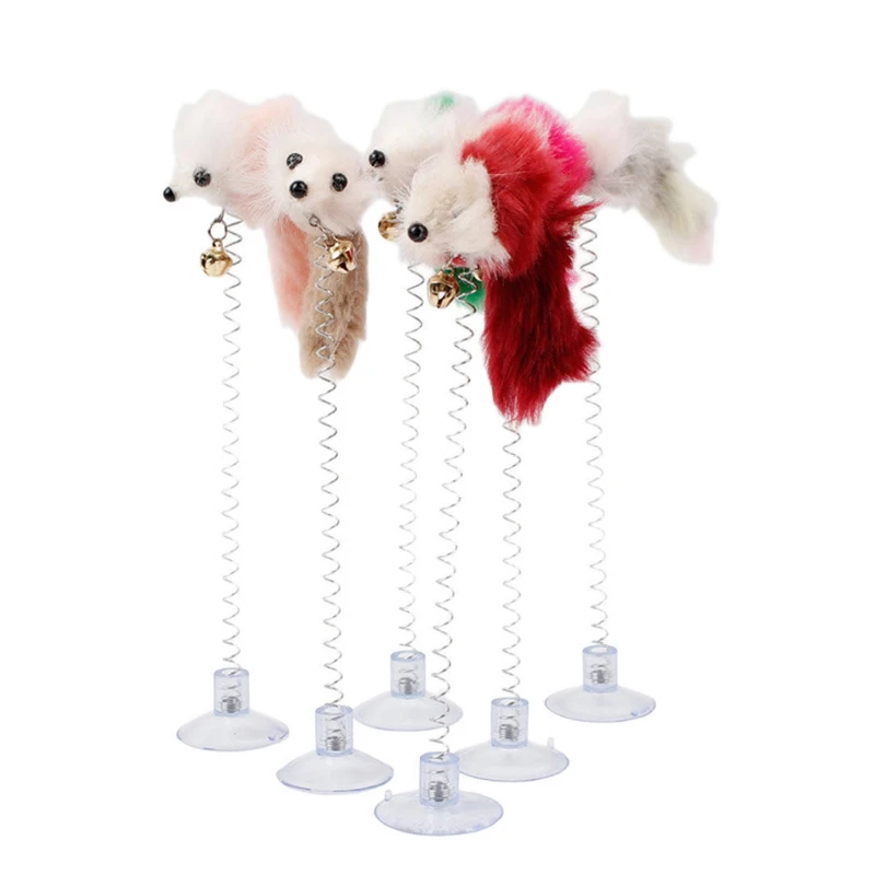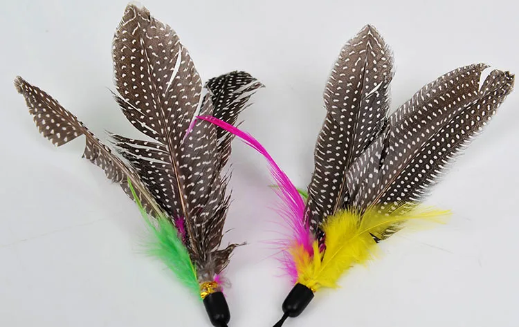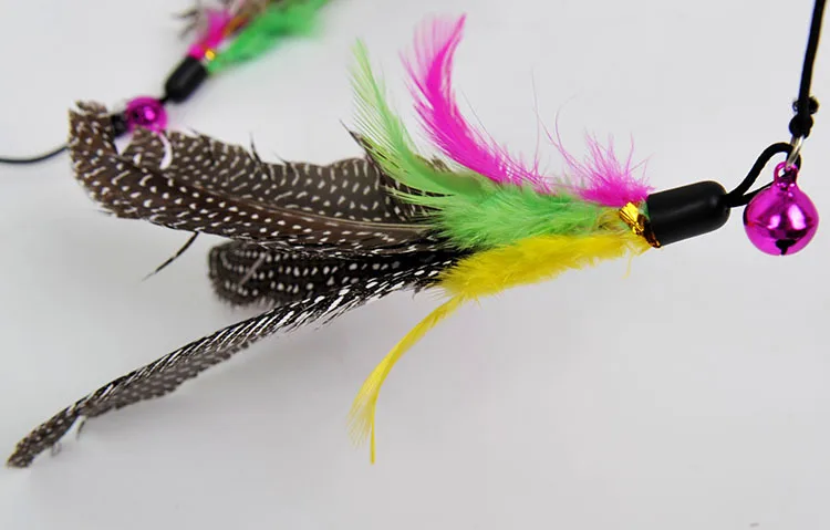 The elastic rope is hanging with chicken feathers, and there will be tinkling bells. The cat likes it very much!