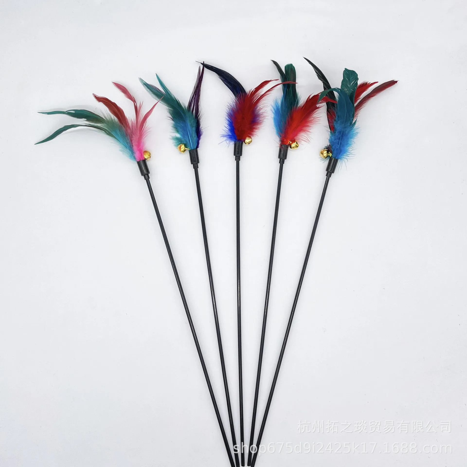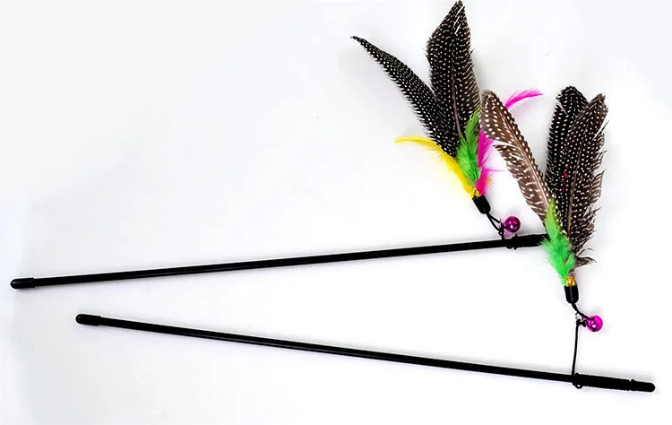 Kitten Cat Teaser Interactive Toy Rod with Bell and Feather