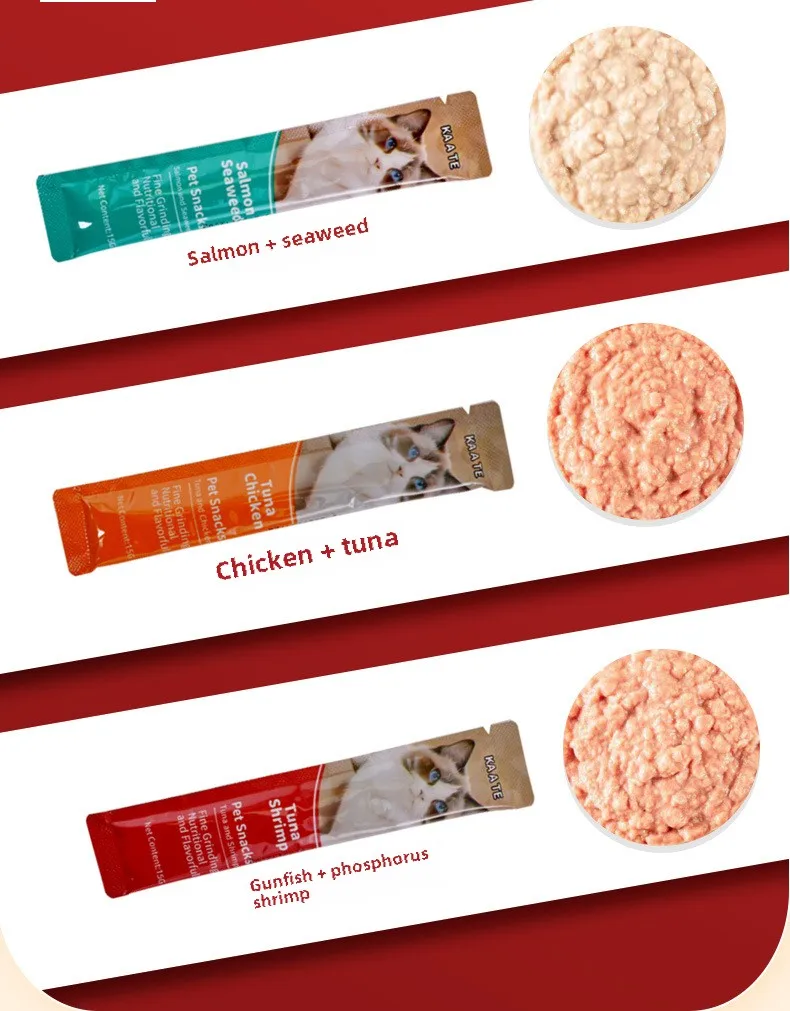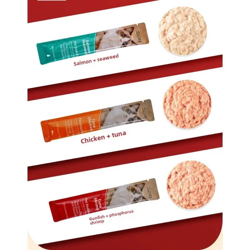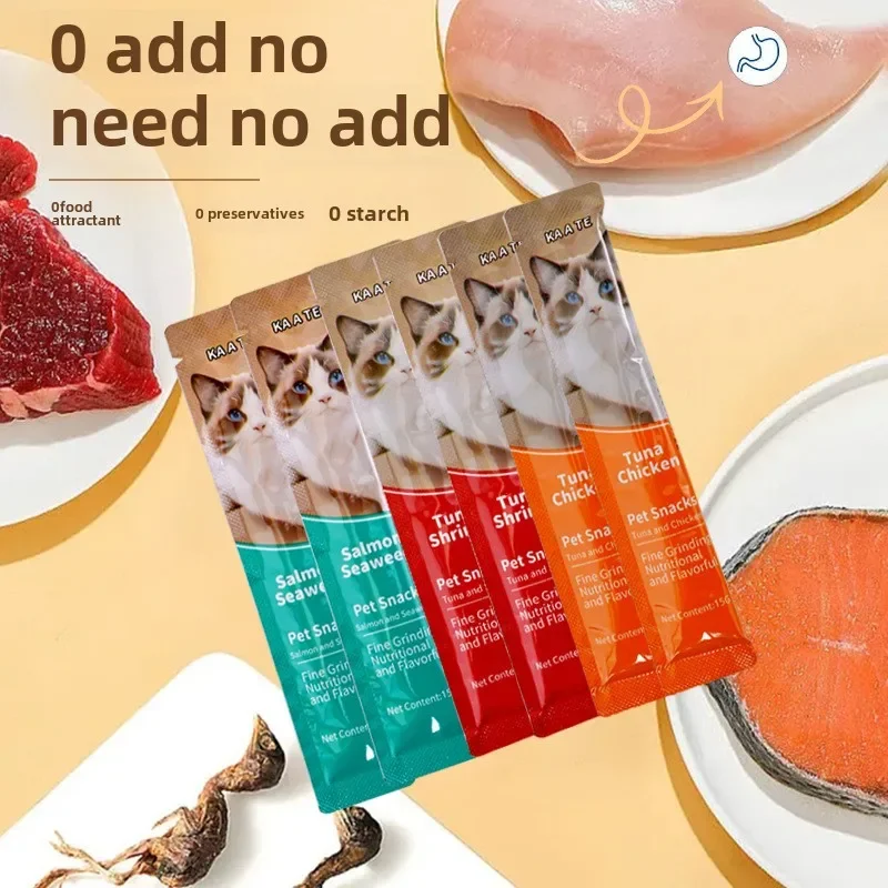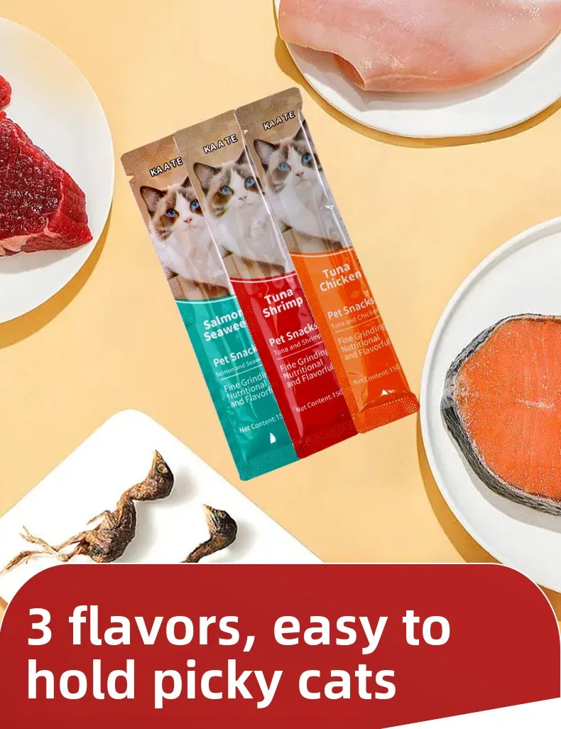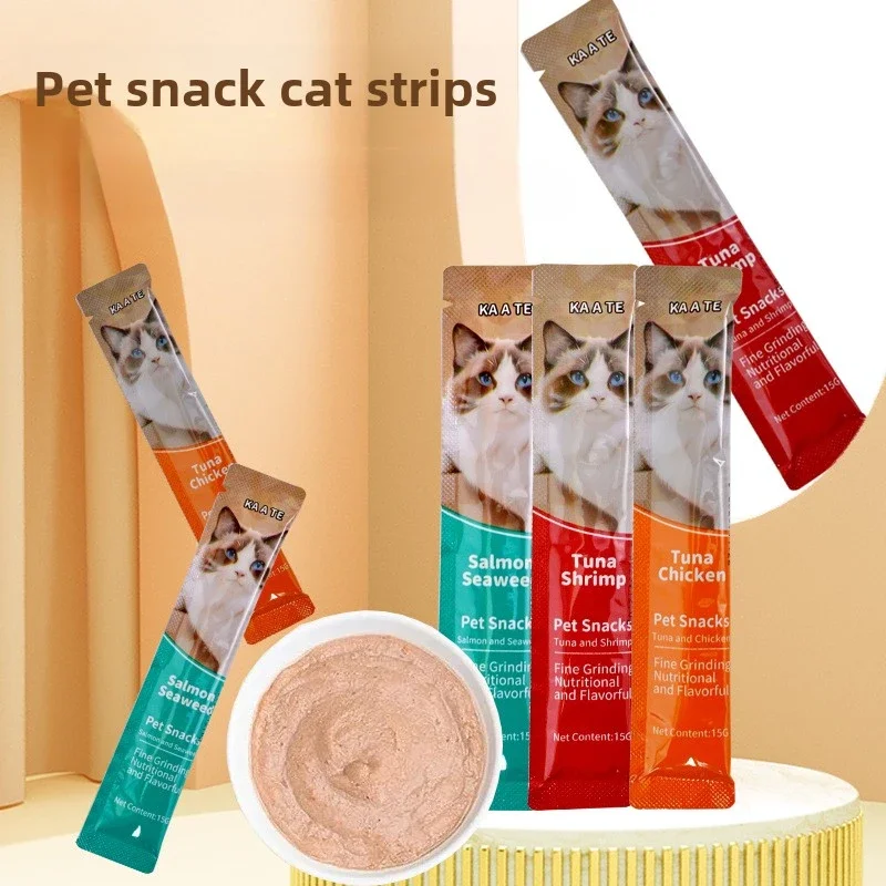 15g*100 Large Capacity Pet Food Cat Snacks Cat Wet Creamy Strips Tuna Salmon Chicken Pet Wet Food
