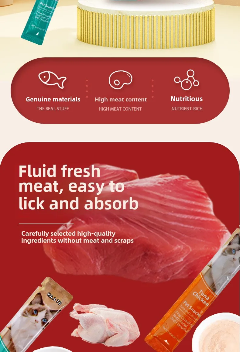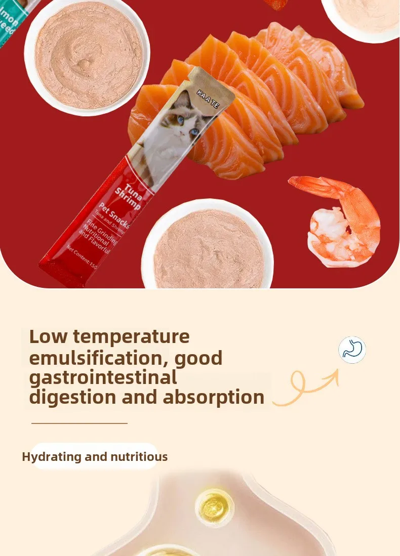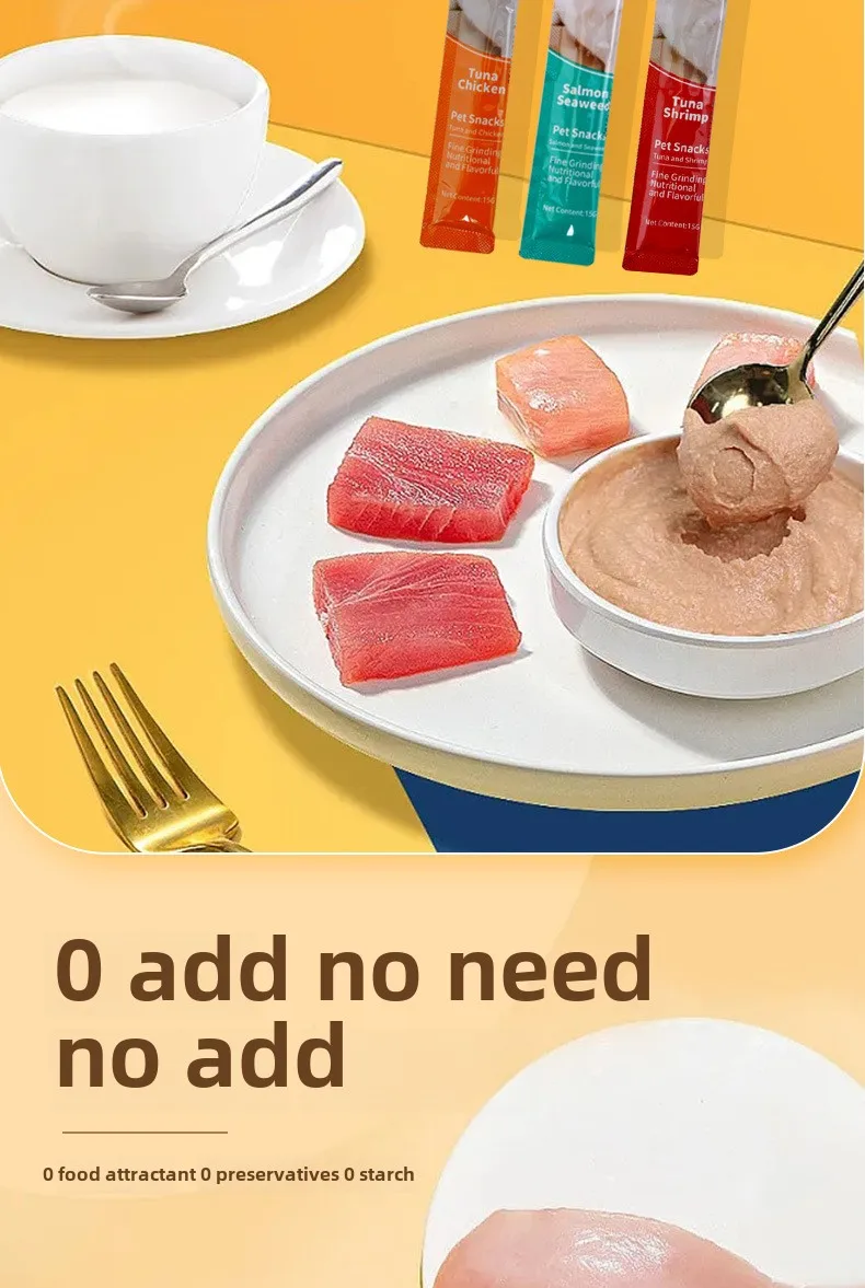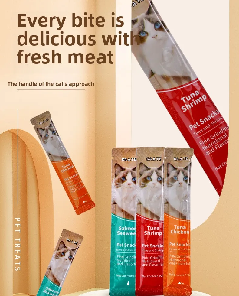 15g*100 Large Capacity Pet Food Cat Snacks Cat Wet Creamy Strips Tuna Salmon Chicken Pet Wet Food