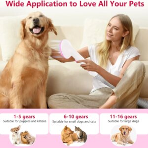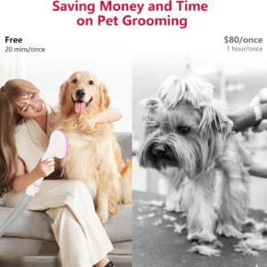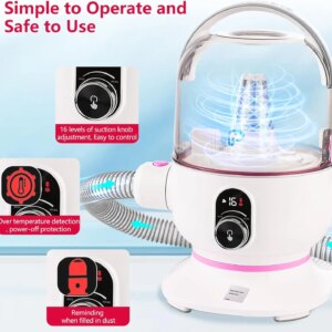 Convenient Drying and Hair Removal: The drying function emits a gentle warm air flow at three adjustable temperature levels, effectively drying your pet’s fur. Additionally, the pet grooming vacuum feature provides different levels of wind suction to capture loose hair and dander during grooming, keeping your home clean and saving you valuable cleaning time.