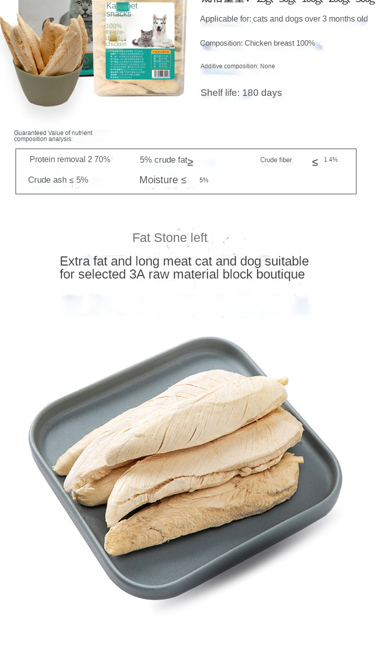 Pet cat freeze-dried chicken breast dog snacks